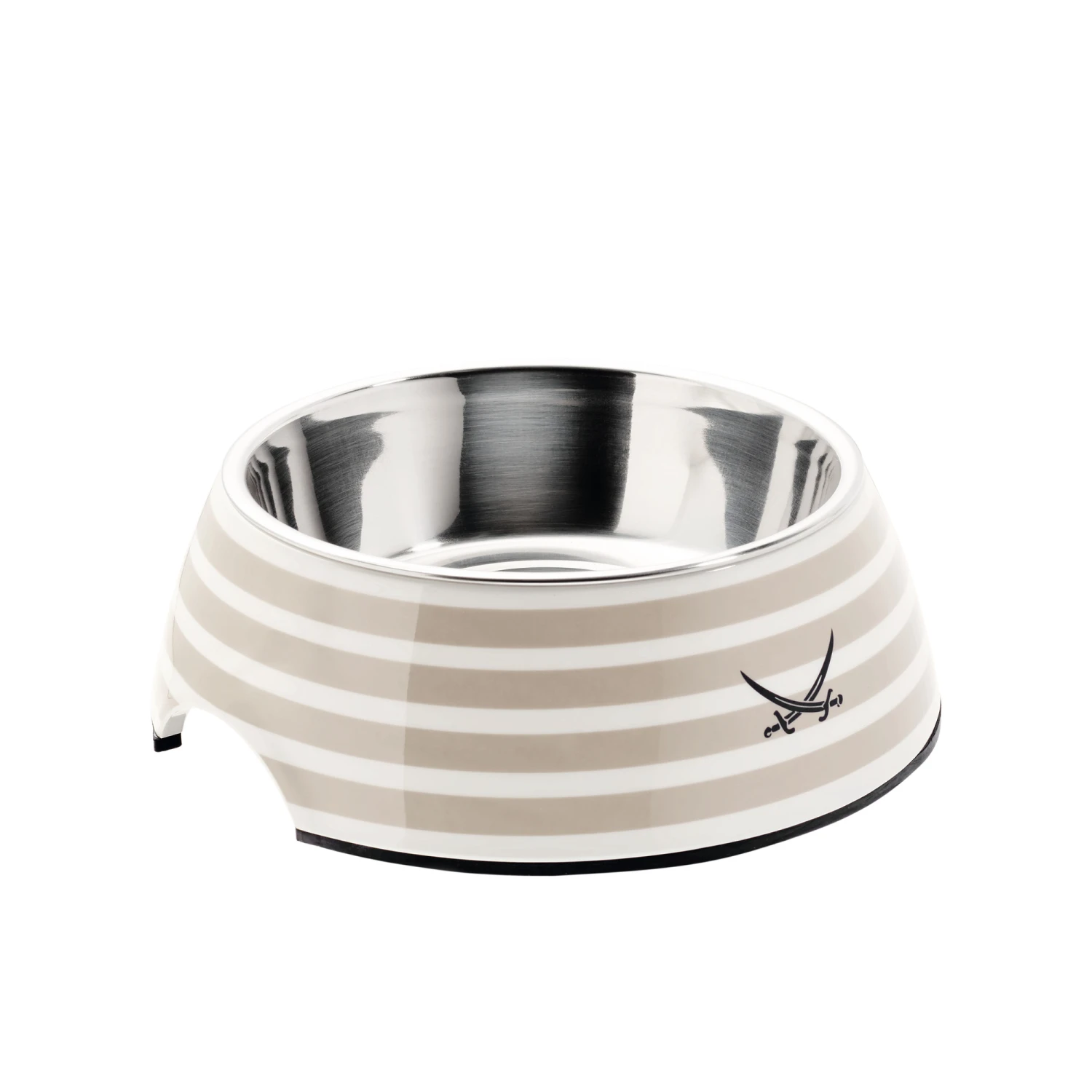 Die SANSIBAR – Deutschlands berühmteste Strandhütte ist für gute Weine und exquisite Speisen berühmt. Die Sandfarben und die typisch gekreuzten Säbel lassen Urlaubserinnerungen wieder lebendig werden. Der Napf aus Melamin ist kratz- und stossfest sowie besonders pflegeleicht. Sehr praktisch ist der herausnehmbare Innennapf aus Edelstahl. Gummiaufsätze am Napfboden sorgen für einen sicheren Stand und verhindern ein Verrutschen des Napfes bei übermütigem Fress- oder Trinkverhalten. Zur Reinigung einfach auswischen oder mit Wasser und einem weichen Tuch oder Schwamm abwaschen.